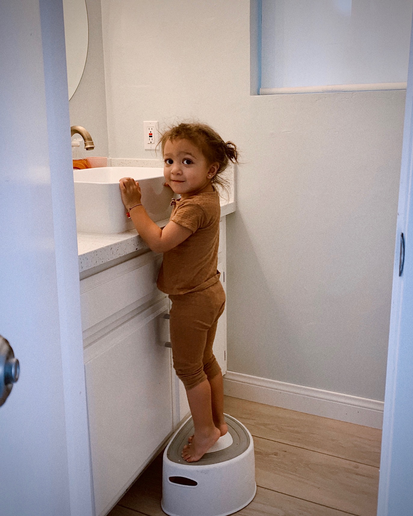 I go back and forth on if I like raised sinks or not. I guess it depends on the bathroom and set up? Definitely not kid friendly